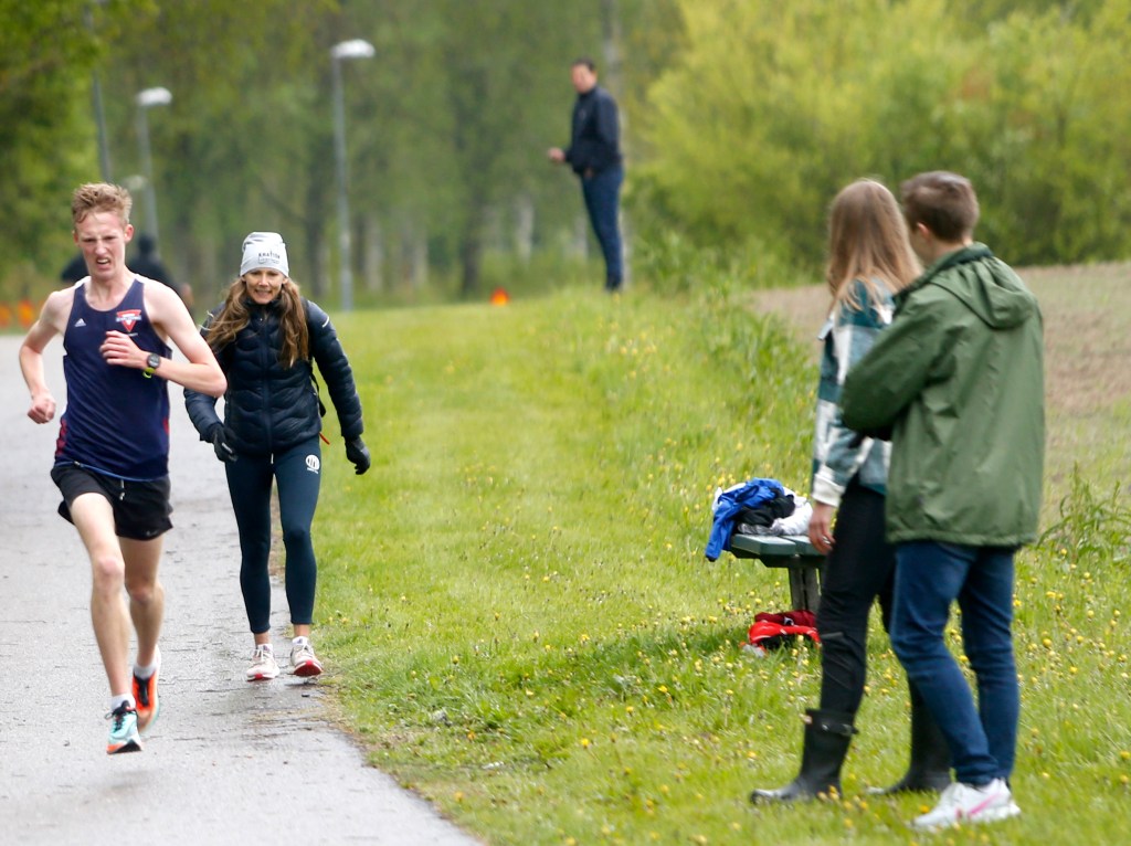 Nu kommer ju inga av de här tiderna att räknas eftersom loppet inte var sanktionerat, Svenska friidrottsförbundet har ju fortfarande totalt tävlingsstopp för seniorer. Men hur som helst sprangs testloppet på gamla Milseriens kontrollmäta tiokilometersslinga på Väster, och Regborn gjorde 29.36 (topp tio i Sverige i år, alla testlopp inräknade, enligt landslagsledaren Lorenzo Nesi som för inofficiell statistik) och van Sitteren 35.09 (15 sekunder från Karin Forsbergs distriktsrekord på 10 000 meter på bana). Fyra löpare gick under 32, sju under 33 och tio (inklusive comebackande Erik Anfält) under 34 i ett lopp med 16 startande där ingen gick över 37 minuter … Hög klass.