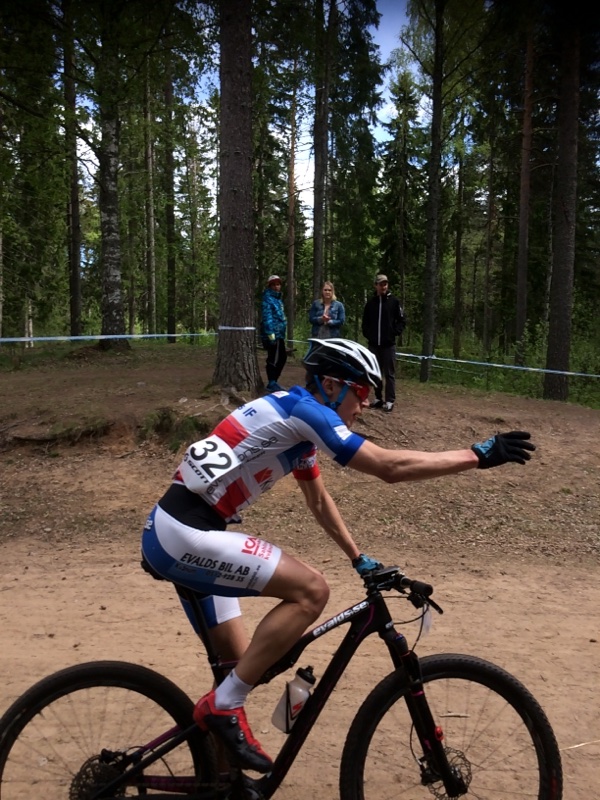 – När vi kom in till varvningen efter elva mil var det ytterligare två som gick iväg, och de hann ikapp de andra tre. Den utbrytningen hade det varit jäkligt bra att komma med i, men jag var inte beredd när det hände och hade inte så mycket krafter kvar. Sista tre milen var benen helt jäkla döda. En av dem som kom iväg där var Kristian Wejshag, som är tvåa bakom mig i cupen, och det var han jag skulle bevaka och försöka ha bakom mig. Nu kom han i stället iväg och spurtade hem segern. Men jag var så trött där, och när vi kom till spurten visste jag inte ens om jag skulle orka resa mig ur sadeln. Men jag lyckades bli tvåa i klungspurten och sjua totalt. Det får jag vara riktigt nöjd med, med tanke på hur det kändes och vad jag hade för förväntningar på förhand.