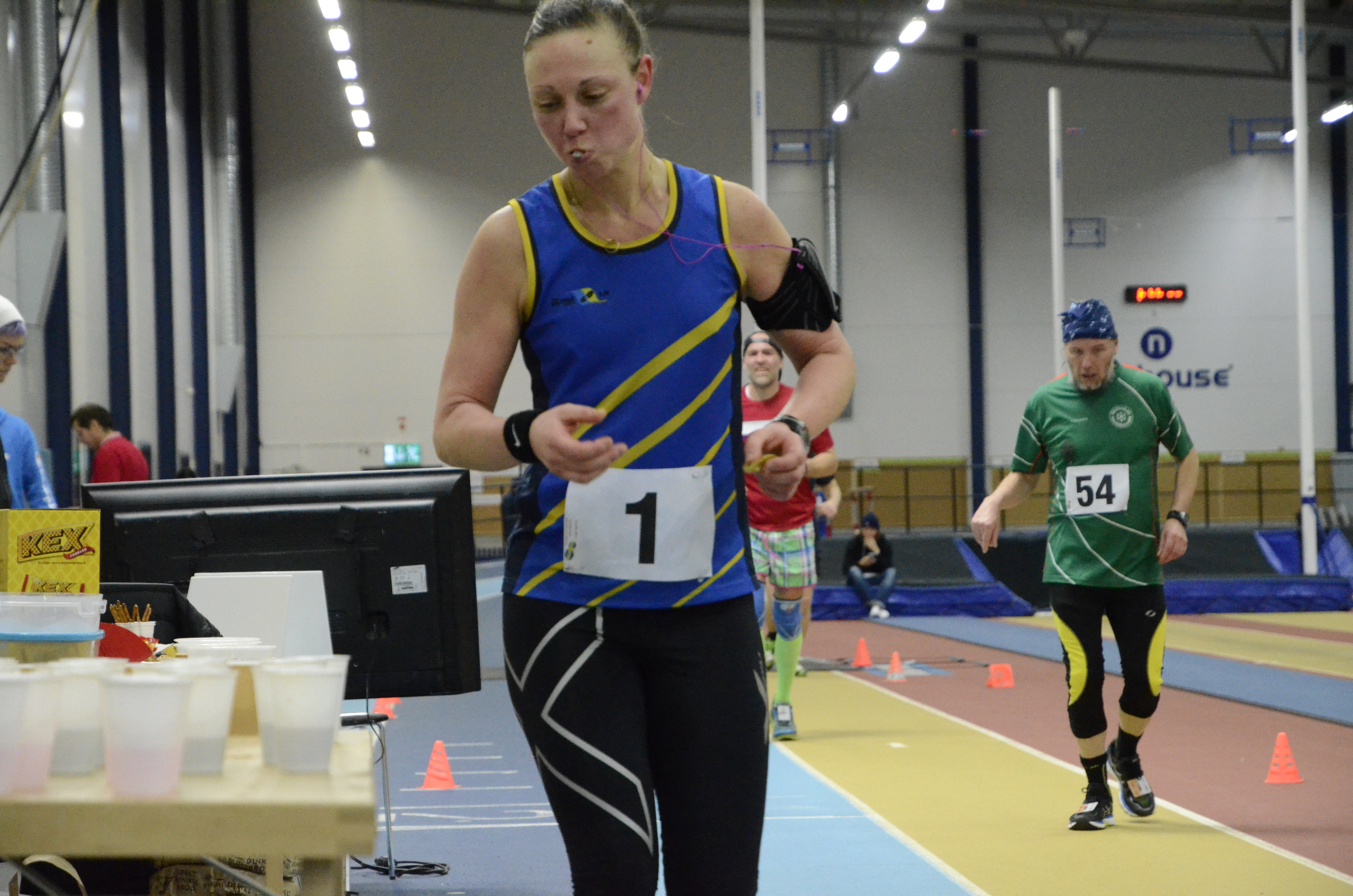 Men den mest anmärkningsvärda prestationen svarade ändå KFUM Örebros Antje Torstensson för. Med tiden 3.23.57 var hon inte bara tvåa totalt i måndagseftermiddagens lopp (över 3,5 minuter före ”herrtvåan” Andreas Larsson, Team Ultrasweden) utan också bara två minuter från Victoria Borgs hallrekord på 3.21.52. Och det i hennes debut i den här typen av lopp. ”Första inomhusmaran slutar med vinst, illamående, krampkänningar och blodtrycksfall. Intressant upplevelse.Vore intressant att veta hur långt man faktiskt sprang, mestadels på ‘omkörningsbanan’”, skriver Torstensson på twitter.