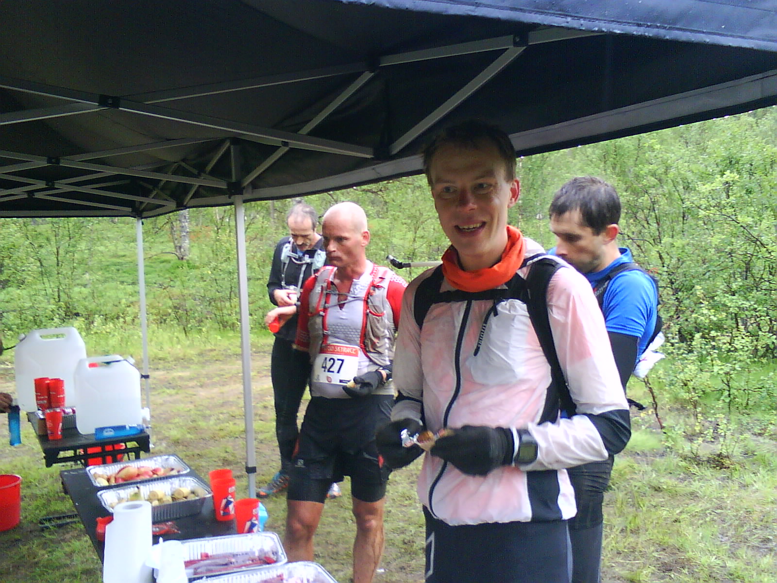 Hårdare och snabbare underlag än väntat i sammanlagt två mil, alltså (plus en handfull kilometer grusväg). Trots det, säger ni, så klarade jag mig under min tillhöftade måltid (fyra timmar), vilket var mer en skamgräns än något annat, med bara två minuters marginal. Jovars, men de övriga 16 kilometerna, eller vad det blev kvar när sträckorna ovan räknats av, bestod bara till liten del av den ljuvliga fjällstig jag drömt om. Resten: Stenskrövvel, lera, myr. En avslutande, krävande uppförsbacke i hård motvind och med en blandning av alla de där tuffa underlagen.