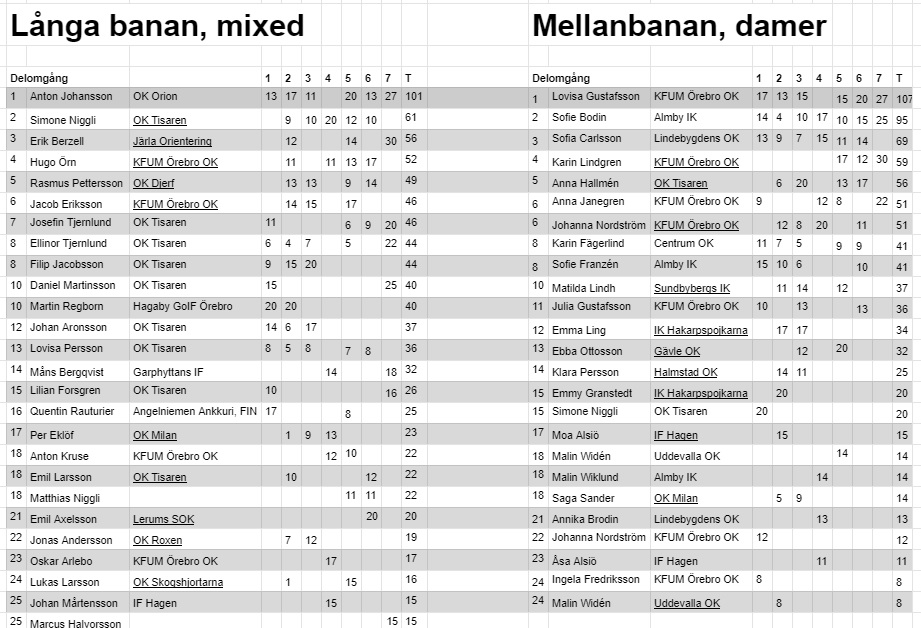 På femkilometersdistnasen var 15-åriga Karlskogalöparen (och -orienteraren) Ella Laine snabbast med 18.54. Faktum är att hela topp tre var 17 år eller yngre – bakom Laine fanns Kolmårdens Alva Karlsson (19.15) och Karlskogas Anna Ferletta (19.27). Lika unga Elis Peterson, OK Denseln, vann på 16.48 medan 26 år äldre örebroaren Victor Barinas tog andraplatsen på 18.21 (fyra sekunder före 15-årige örebroaren Edvard Halldin).