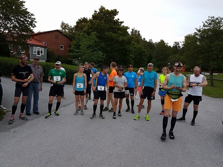 Den första startlinjen, 9.00 på lördagsmorgonen. Konditionsbloggaren bakom kvinnan i neongrön t-shirt. Foto: Ola NordahlFram till vätskestationen halvvägs var jag (röd tröja) sällan så långt efter Sören Forsberg (Örebro AIK:s blå tävlingslinne), men sedan bibehöll han tempot medan jag gick en stor del av andra halvan. Foto: Ola NordahlIn på den härligaste biten av banan på varv sju, den breda, fina skogsstigen mellan kilometer fyra och 5,5. Foto: Maria ÅströmGenom grönskan på varv sju. Ett underbart härligt sommarväder knäckte nog en hel del av de som tänkt springa 24 timmar. Foto: Maria ÅströmDen elfte startlinjen, 19.00 på lördagskvällen. Konditionsbloggaren skymd (en viftande hand med pulsklocka på syns). Foto: Ola NordahlUt på varv 23. Tre tappra kvar. Fredrik, konditionsbloggaren och Sören. Foto: Ola NordahlDet som visade sig bli den sista målgången, efter 24:e varvet, tog jag tillsammans med sjuåringen som sov i tält precis vid mållinjen hela natten. Foto: Maria ÅströmEn konditionsbloggare, en massagerulle, ett par långa löpartajts, en unik ring och en bronskrans. Fina grejer! Foto: Ola Nordahl